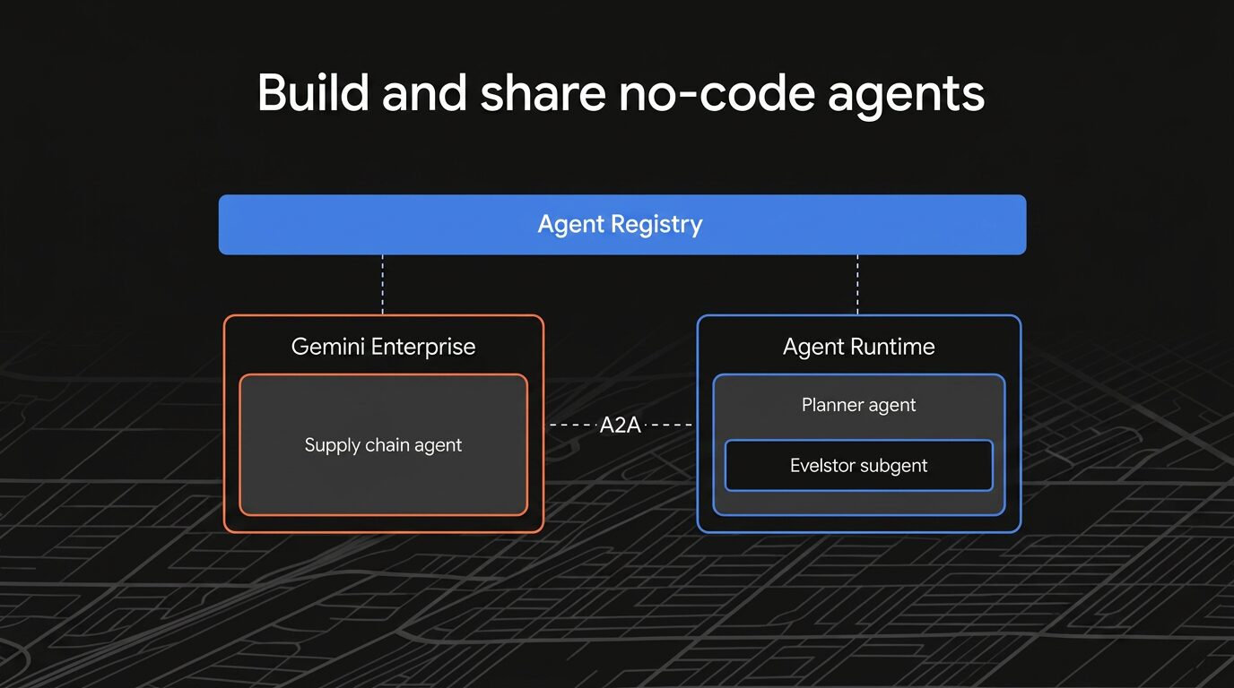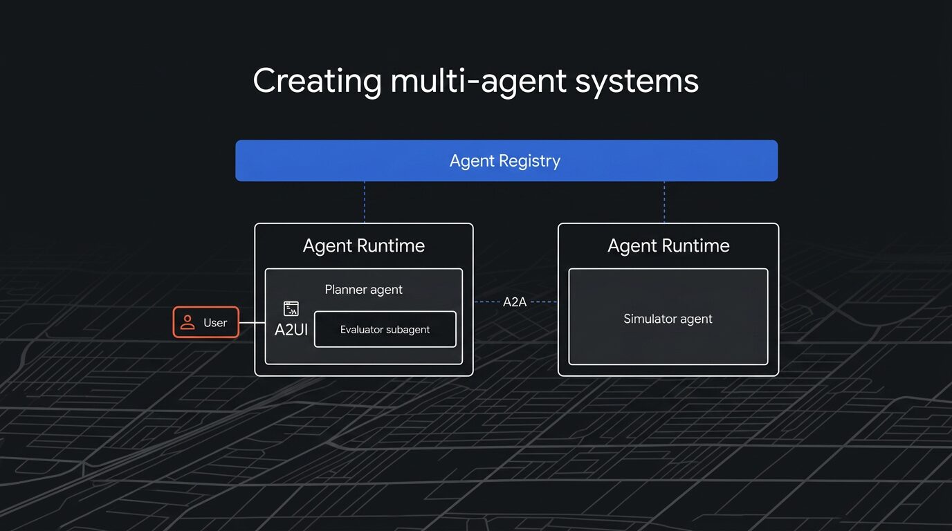 ※この記事は迅速な情報提供を重視し、速報として掲載しております。もし記事内に誤りがございましたら、後日訂正いたします。 目次 Toggle はじめに今回の基調講演のテーマGoogle Cloud Next ’26 キーノート概要デモで描かれた未来:AIが都市イベントを設計する3つのエージェントがチームとして働くデモの自律性を支える、エージェント構築の主要コンポーネントまとめGoogle Cloud Next Tokyo ’26 開催決定!参加登録受付中 はじめに 現在ラスベガスで開催されている Google Cloud の旗艦イベント「Google Cloud NEXT’26(以下、Next’26)」に現地参加中の茜、井上です。Google Cloud NEXT’26 の最新情報を現地からお届けします! 本稿では、 2026 年 4 月 23 日(木)10:30–11:45(PT)の Developer Keynote(ホスト: Brad Calder 氏、Richard Seroter 氏ほか)の内容を速報で紹介します。 今回の基調講演のテーマ Developer Keynote では、Gemini Enterprise Agent Platformを活用し、単なるチャットボットを超えた、自律的に動作する「プロダクション・レディ」なエージェントの構築手法が7つのデモを通じて紹介されました。 Google Cloud Next ’26 キーノート概要 これまでのAIは、質問に答える存在でした。しかし今回のGoogle Cloud Nextで示されたのは、まったく異なる未来です。 AIが自分で考え、判断し、行動する。 そんな「エージェント」と呼ばれる存在が、すでに現実のものになりつつあります。 キーノートの冒頭では、印象的な事例が紹介されました。 医療現場でAIが意思決定を支援し、ICUの死亡率を47%削減 個人に合わせて学習内容を変える教育アプリ 現実世界を再現して学習する自動運転AI これらはすべて、「単なるAI」ではなく 実際に意思決定に関わるエージェント型のシステムです。 デモで描かれた未来:AIが都市イベントを設計する 今回のキーノートは、1つのストーリーを軸に進みました。 それが、 ラスベガスで開催される1万人規模のマラソン大会を、AIが設計・運営する というシナリオです。 一見するとエンタメのようですが、実際には非常にリアルな問題です。 交通規制はどうするか 医療体制は十分か 地域への影響はないか 安全性は確保されているか こうした複雑な課題を、AIがどのように解決するのかがデモされました。 3つのエージェントがチームとして働く このシステムの中心には、3つのエージェントが存在します。 ■ Planner(プランナー) マラソンのルートを設計する役割です。地図やランドマーク、交通状況などを考慮しながら、最適なコースを提案します。 ■ Evaluator(評価者) そのルートが適切かどうかを評価します。 例えば: 距離は正しいか 安全性に問題はないか 地域への影響はどうか といった観点から、スコアリングを行います。 ■ Simulator(シミュレーター) 実際にそのルートでマラソンを開催した場合を再現します。 ランナーの動き 交通への影響 混雑状況 などを仮想空間で再現し、現実に近い形で検証します。 この3つが連携することで、 「考える → 評価する → 試す」 というプロセスが自動化されます。 デモの自律性を支える、エージェント構築の主要コンポーネント ここからが今回のキーノートの本題です。 Googleは、こうしたエージェントを実現するための仕組みをいくつかの重要な技術として提示しました。 1. Agent Development Kit (ADK) と MCP による基礎構築 使用技術: Agent Development Kit (ADK), Model Context Protocol (MCP) エージェントに特定の「スキル」や「ツール」を付与し、現実に即したタスクを実行させることができます。 このデモでは、MCPサーバーを通じてGoogle MapsのAPIと連携させることで、エージェントが現実の地図データやランドマーク情報を直接取得し、最適なマラソンルートを自動で計画できるようになりました。 複雑なAPI連携をGoogle Cloudが安全に管理してくれるため、開発者はエージェントの構築に専念できます 紹介された機能の解説 Agent Development Kit (ADK): モジュール型エージェントを構築するためのフレームワーク 。 Model Context Protocol (MCP): エージェントが外部ツールやデータと通信するための標準プロトコル 。 Skills: YAMLメタデータとMarkdownで定義され、エージェントに専門知識(地図、GIS、レース運営等)を付与するコンポーネント 。 Google Cloud MCP Servers: Google Cloudの全サービスがMCPに対応し、地図データ等への安全なアクセスを提供 。 2. A2AプロトコルとA2UIによるエージェント間の協調 1つのエージェントだけでなく、複数のエージェントをチームとして連携させます。 使用技術: Agent-to-Agent (A2A) プロトコル, Agent Registry, A2UI (Agent User Interface) デモでは、「ルートを計画するエージェント」「ルートを評価するエージェント」「実際にシミュレーションを動かすエージェント」が、脆弱なAPIコードを書くことなく自動的に連携していました。 さらに驚くべきはA2UIの導入です。エージェント自身が、評価結果や地図を表示するための最適なユーザーインターフェース(UI)を動的に生成し、人間に分かりやすく提示することが可能になりました。 紹