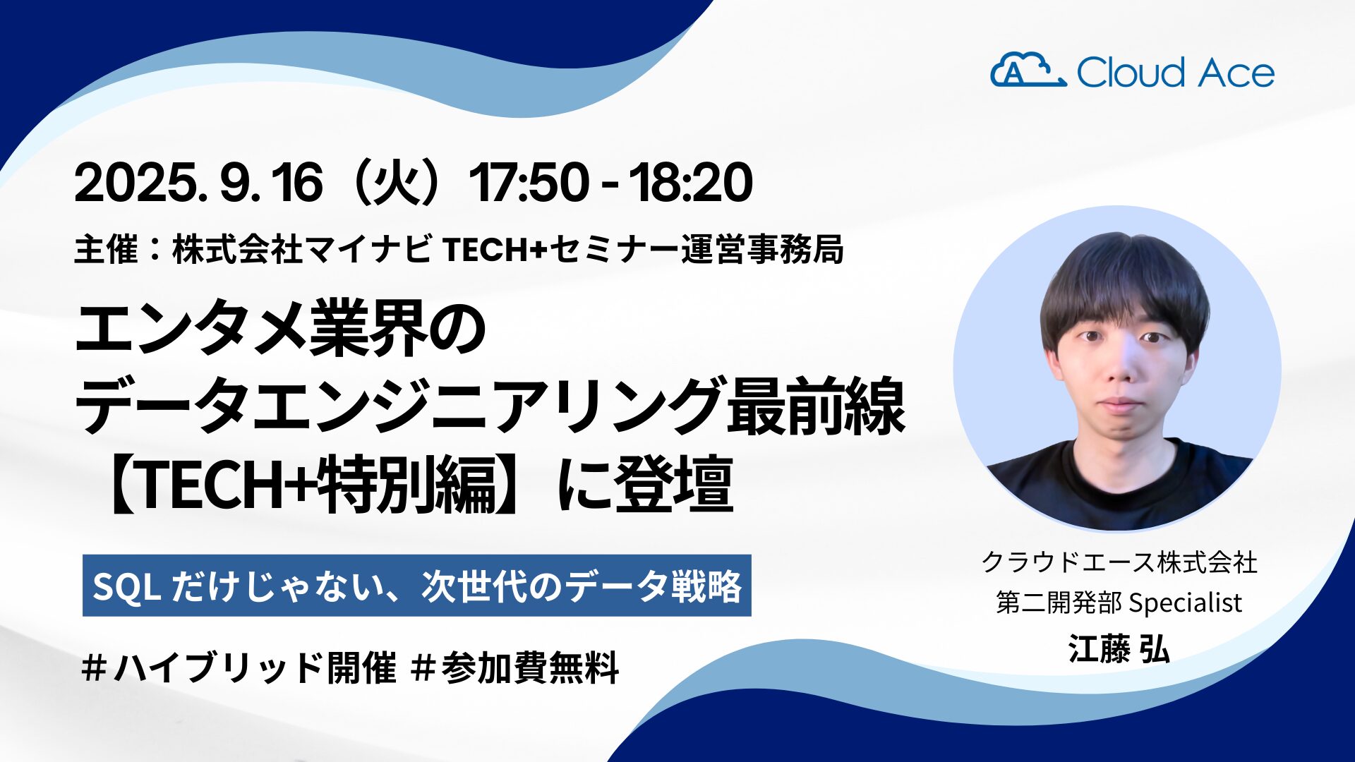クラウドエース株式会社(本社:東京都千代田区、代表取締役社長:青木 誠)は、2025 年 9 月 16 日に開催されるイベント「エンタメ業界のデータエンジニアリング最前線【TECH+特別編】」に弊社社員が登壇することをお知らせいたします。