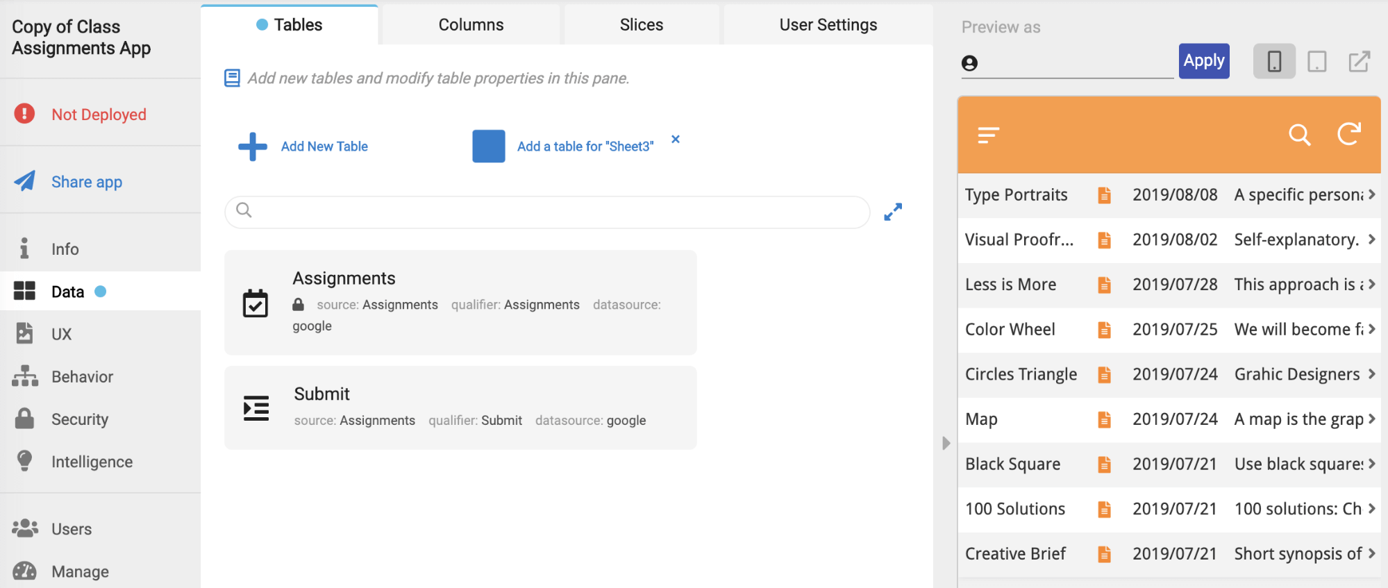 - プレビューしながらアプリの構築が可能ユーザーはブラウザ上でアプリを構築しながらリアルタイムにUIのプレビューが可能です。