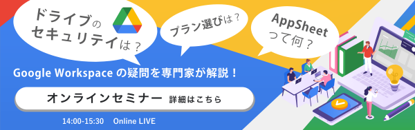吉積情報株式会社は Google Workspace 関連セミナー(オンライン)を定期開催しています! Google Workspace や Google ドライブをもっと安全に利活用するための拡張機能等を徹底解説します!